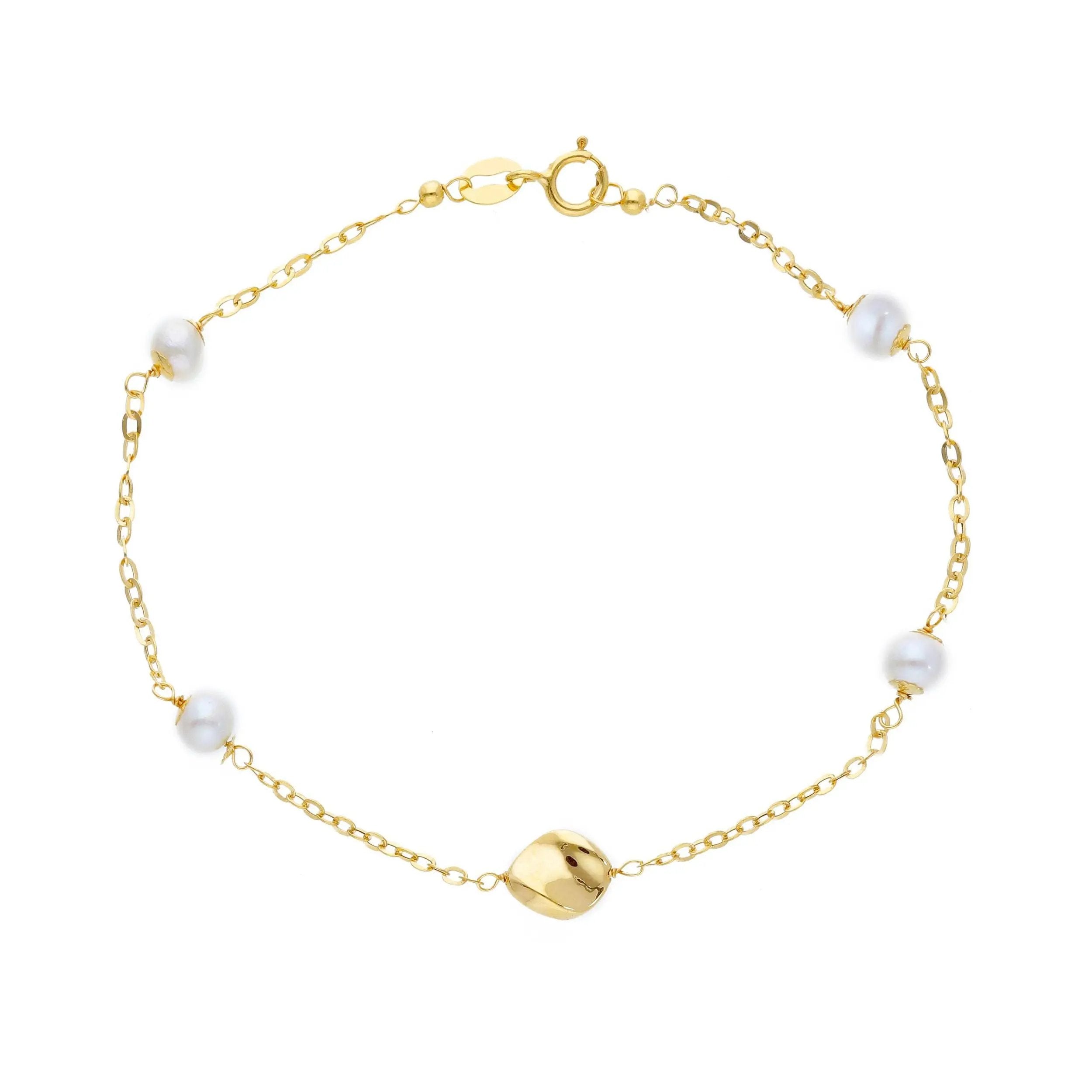 Introducing a timeless treasure of elegance and grace — the 18K Solid Yellow Gold Twist Center with 4mm Pearls Bracelet. Handcrafted in Italy with luxurious hypoallergenic 18K solid yellow gold, this bracelet blends classic beauty with modern sophistication. The design features a polished twisted center hollow bead, expertly balanced by four lustrous 4mm cultured pearls that add natural glow and refinement.