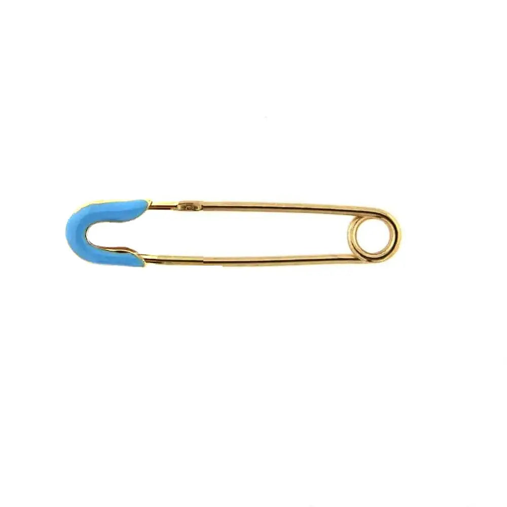 دبوس أمان مطلي بالمينا الأزرق من الذهب الأصفر عيار 18 قيراط – 1 إنش