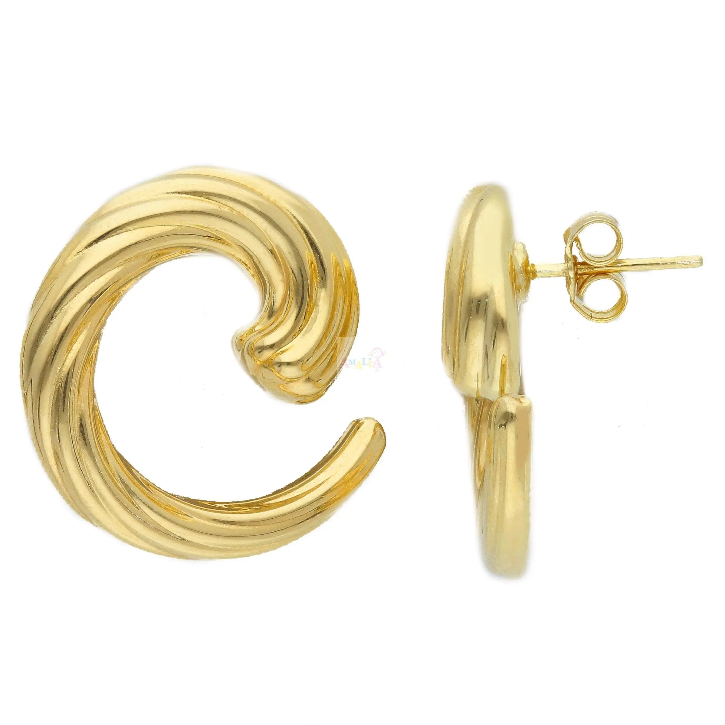 Crafted using the advanced electroform technique, each earring measures 0.86 x 0.87 inches (21.8 x 22.1 mm), achieving a puffy yet lightweight shape that maintains beautiful volume without heaviness. The design features a sleek open twisted circle, creating a sculptural, fluid form that reflects light brilliantly from every angle. A secure post-back closure ensures a comfortable and reliable fit for all-day wear.