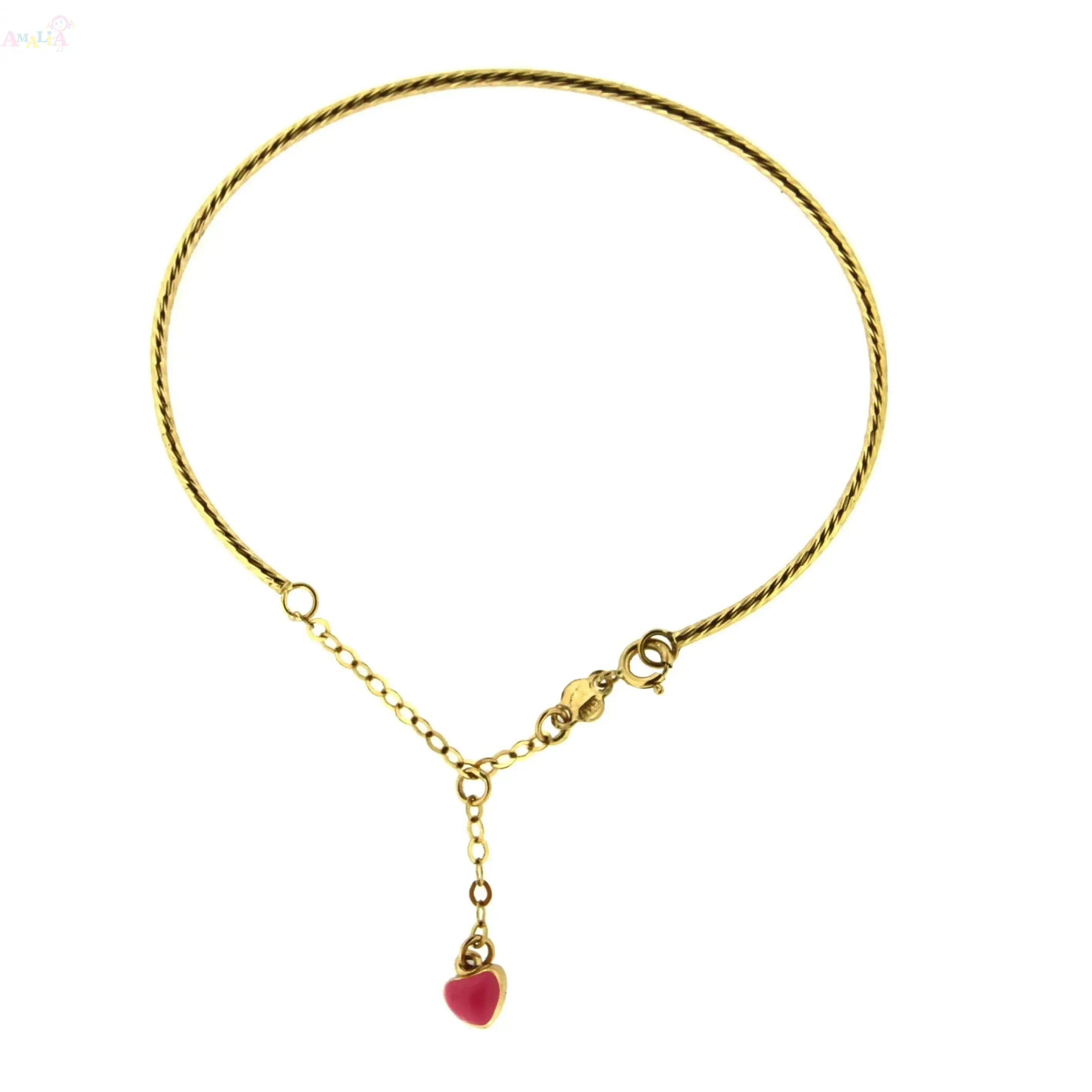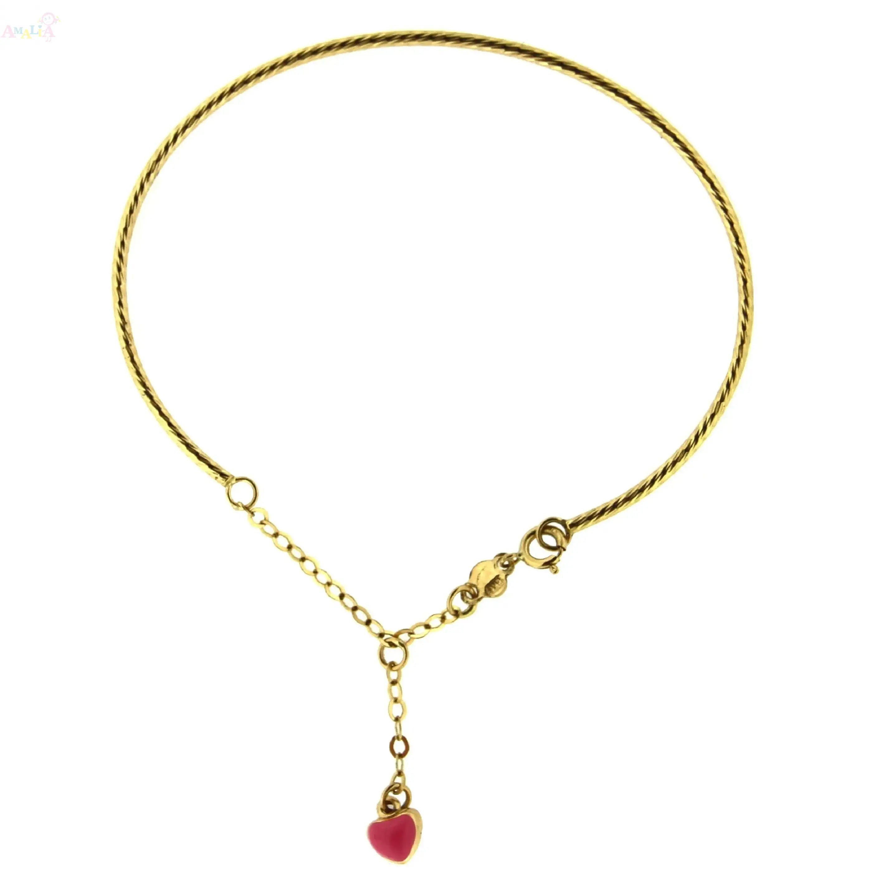 Delight your little one with the charm and elegance of our 18K Solid Yellow Gold Enamel Pink Dangling Heart Bangle, thoughtfully designed for girls ages 2 to 5. Measuring 5.70 inches, this bracelet is crafted in Italy using hypoallergenic solid 18K yellow gold, ensuring it’s lead- and nickel-free for safe, everyday wear on delicate skin.