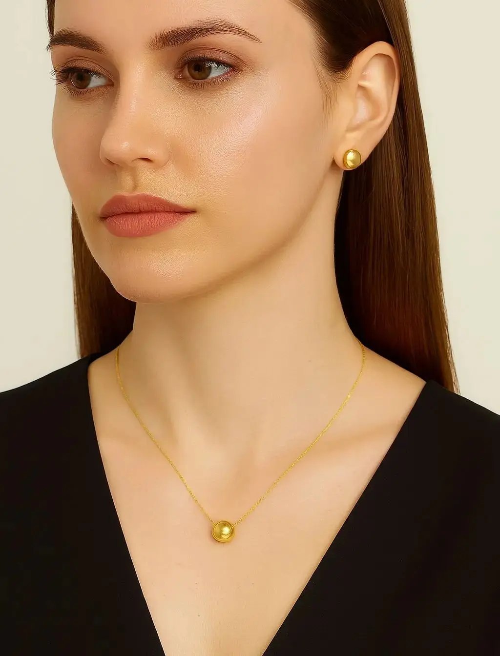 Each earring features a beautifully rounded puffy button shape with a smooth, polished finish that reflects light from every angle, adding a warm golden glow to any look. Their secure post-back system ensures both comfort and stability, making them perfect for daily wear or special occasions alike.