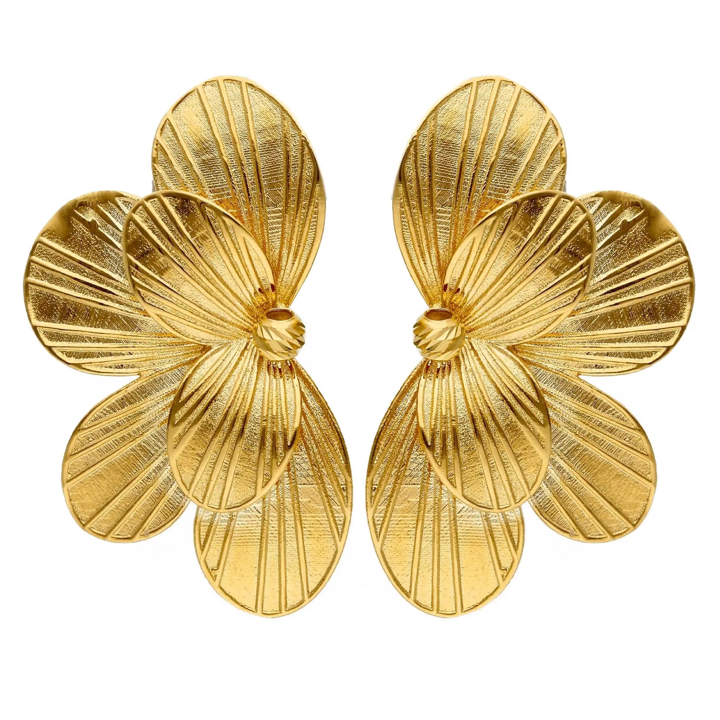 Bring a touch of refined artistry to your look with the Solid Yellow Gold Satin Finish Half Flower Large Earrings, designed to radiate elegance from every angle. Their sculptural half-flower silhouette combines a soft satin texture with polished veins, while a sparkling diamond-cut center sphere adds depth and brilliance. Measuring 1.19 x 0.69 inches (30 x 18 mm), these earrings strike the perfect balance between bold and graceful. Each piece features an omega back closure — a hinged clasp that locks securely while providing a gentle, even hold on the earlobe, ensuring comfort even after hours of wear. Perfect for evening occasions, weddings, or as a meaningful gift, these earrings arrive in the signature Amalia Jewelry gift box, ready to impress. Expertly made in Italy, they embody timeless craftsmanship and luxurious detail, created entirely from hypoallergenic solid 18K yellow gold, free of lead and nickel for lasting beauty and comfort.