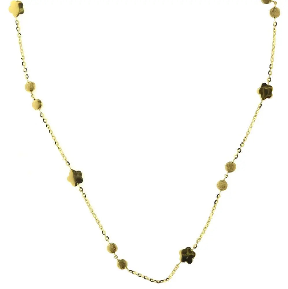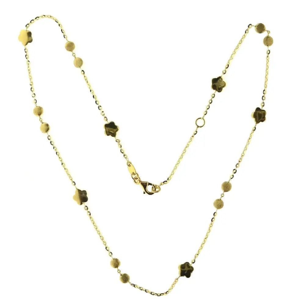 18KT Yellow Gold Polished Flowers with Satin Circles Necklace 15 inches