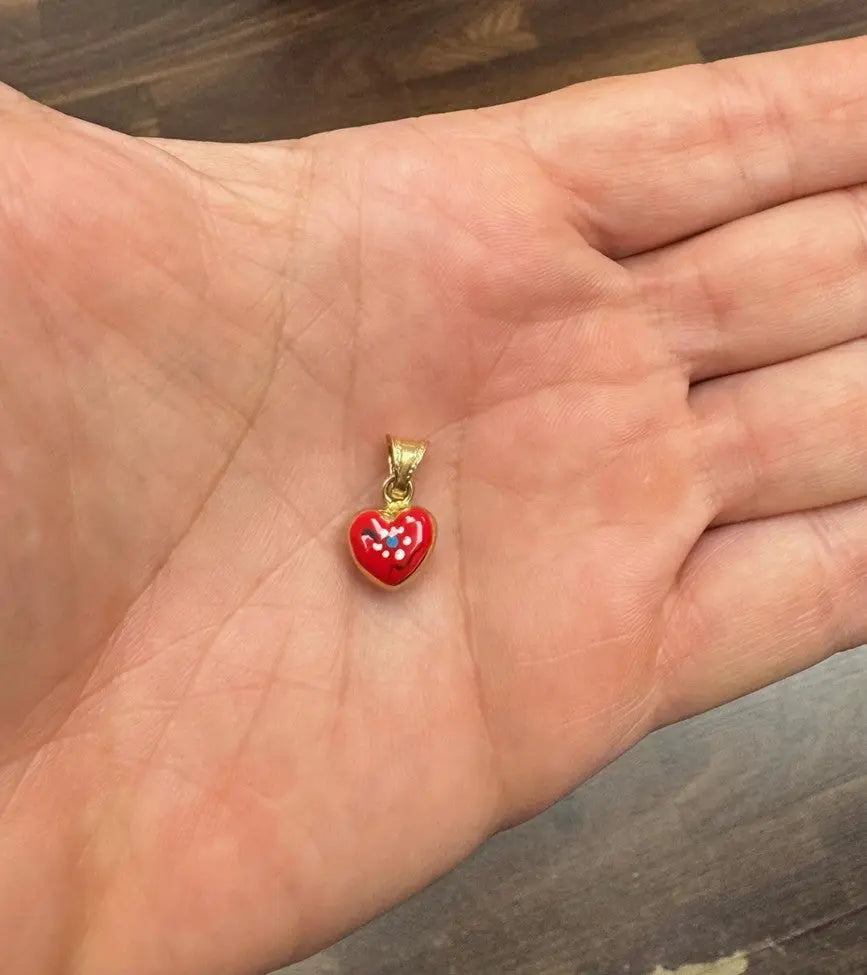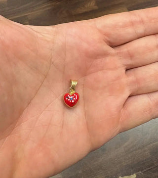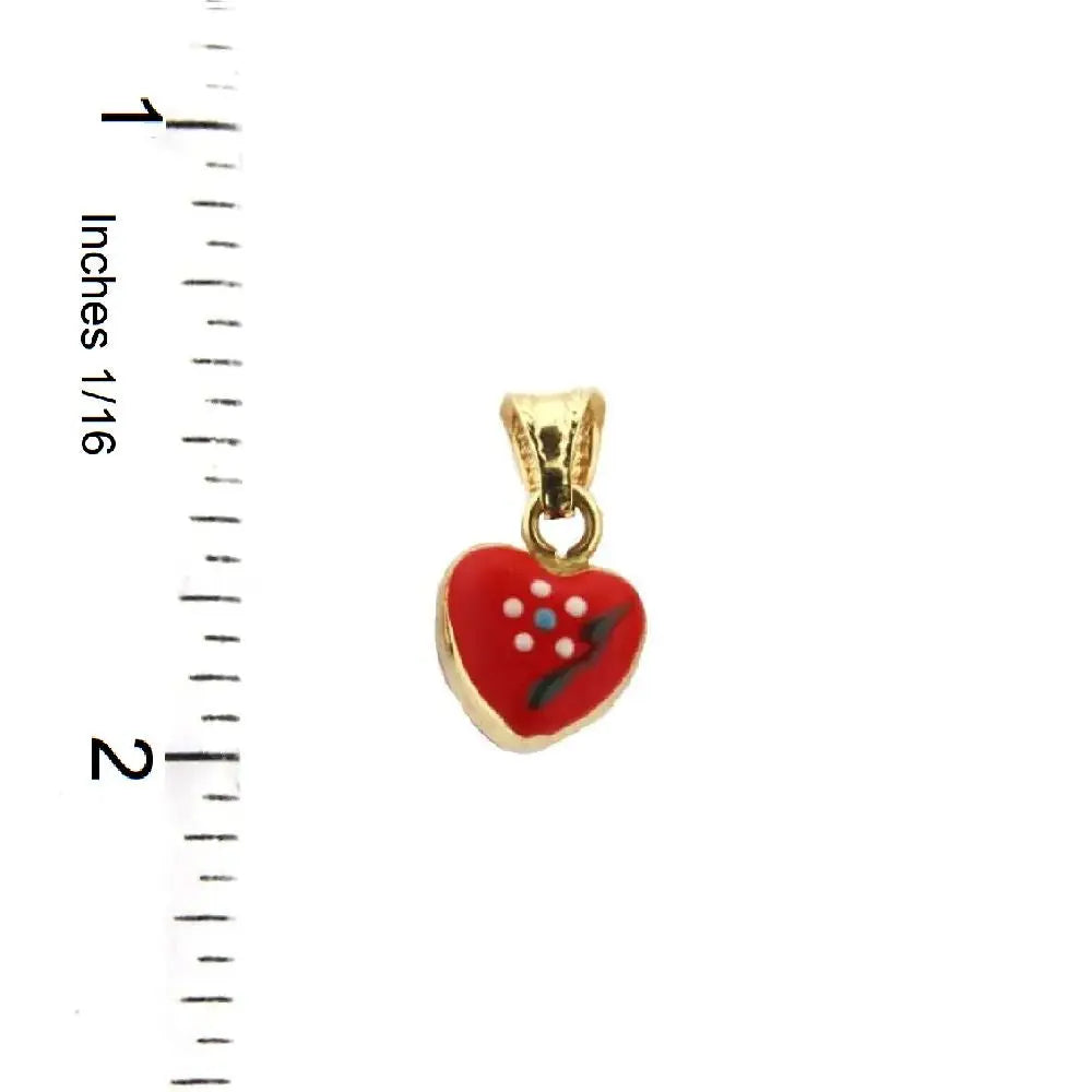 Crafted in Italy from hypoallergenic 18K yellow gold, this pendant is free from lead and nickel, ensuring it's gentle on sensitive skin. The beautiful puffy heart is adorned with a vibrant red enamel and features a delicate flower design on both the front and back, adding depth and intrigue to this elegant piece.