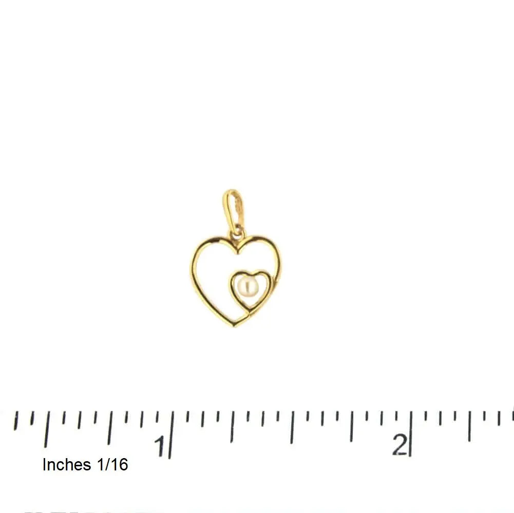 Introducing our charming 18K Solid Yellow Gold Open Double Hearts Pendant, adorned with a 2.50 mm Cultivated Pearl. Sized at an appealing 0.42 x 0.40 inches (approximately 10.7 x 10.2 mm) without the bail, this pendant is ideally suited for girls aged 7 years and older. Its delicate design features two intertwined hearts, symbolizing love and connection, crowned by a lustrous pearl that adds a touch of sophistication. Crafted from hypoallergenic yellow gold, free from lead and nickel, it ensures comfort and safety for sensitive skin. Please note, the chain is not provided, and the small inside bail may require professional assistance for attachment. Each pendant comes beautifully packaged in an Amalia gift box and bag, making it a perfect gift for birthdays, special occasions, or as a treasured keepsake. Gift this exquisite pearl pendant to showcase love and elegance in a piece that's as unique as your special girl.