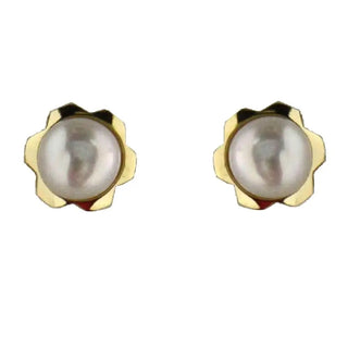 18 Karat Solid Yellow Gold Pearl Flower Screwback Earrings