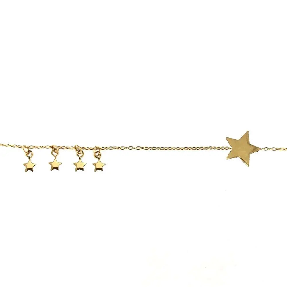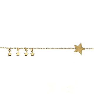 Add a touch of celestial charm to your jewelry collection with our 18K Solid Yellow Gold Polished Dangling Stars Bracelet, a perfect choice for both teenagers and adult women. This elegant accessory features a beautifully polished in-line star alongside four enchantingly tiny stars that dangle gracefully, embodying the wonder of the night sky. Skillfully crafted in Italy from hypoallergenic 18k yellow gold, this bracelet is designed to be both stylish and safe, free from harmful nickel and lead. With a total length of 7 inches and additional adjustable rings starting at 6.50 inches, it ensures a versatile and comfortable fit for diverse wrist sizes. Each bracelet arrives in a sophisticated Amalia gift box and bag, making it an ideal present that captures enchanting elegance and the timeless beauty of the stars.