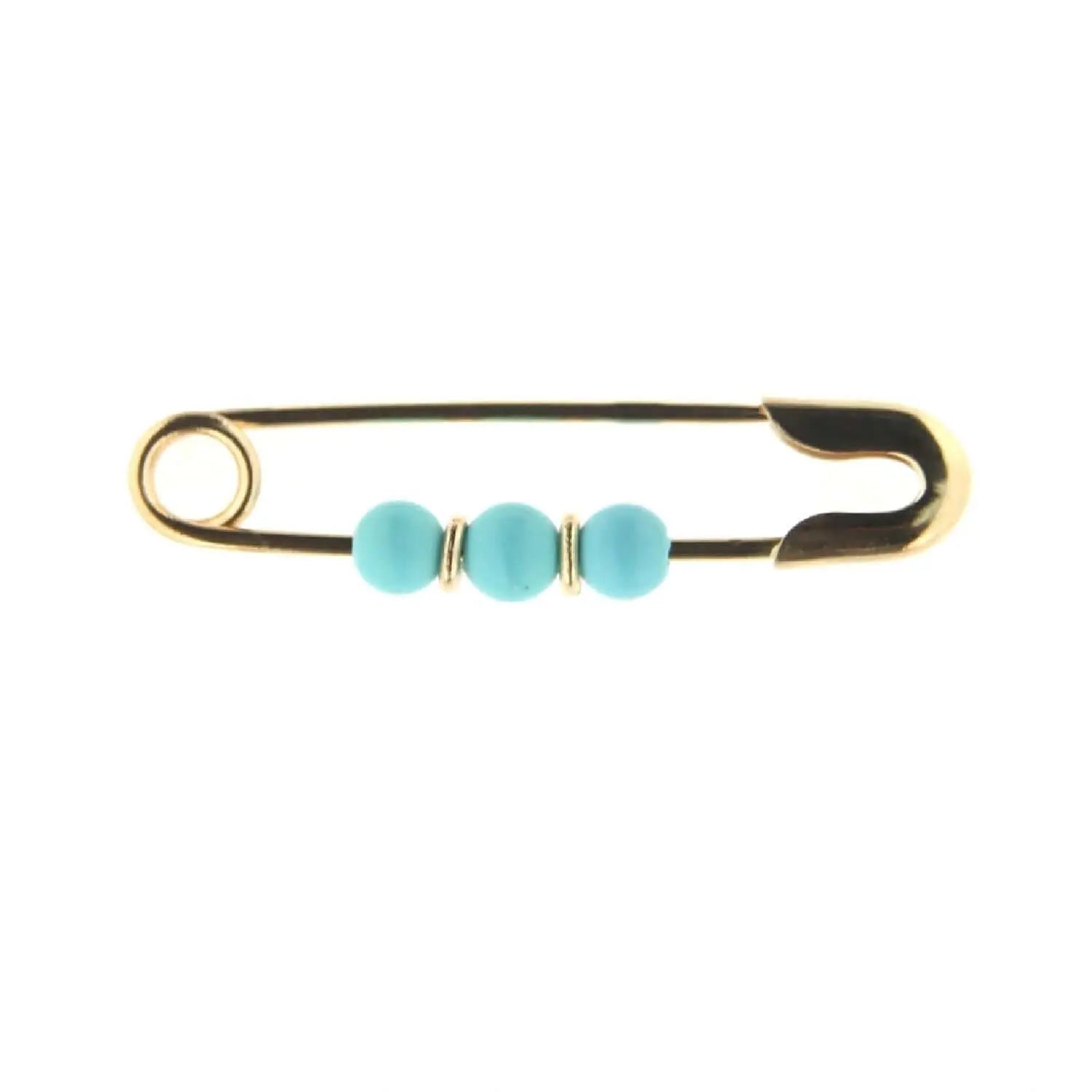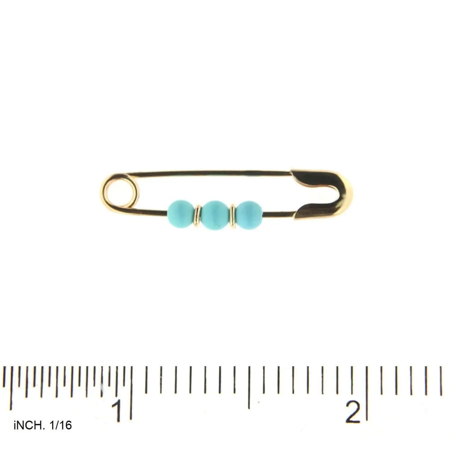 Introducing our stunning 18K Solid Yellow Gold Turquoise Beads Safety Pin - 1 inch— a perfect fusion of style and meaning. Expertly crafted from hypoallergenic, high-quality 18K solid yellow gold, this elegant piece features vibrant turquoise paste beads that add a striking pop of color and texture to any outfit.