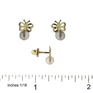 18K Solid Yellow Gold Butterfly and pearl covered screwaback earring