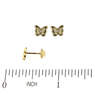 18K Yellow Gold White Zirconia Butterfly Screwback Earrings