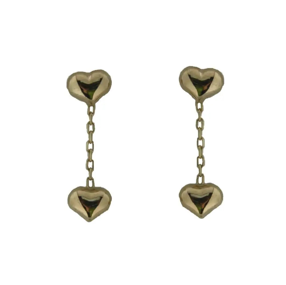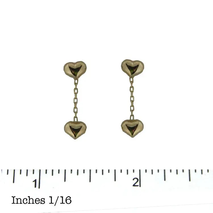 Discover the timeless elegance of our 18K Solid Yellow Gold Dangle Puffy Heart Post Earrings. Designed for ages 6 and up, these earrings feature a puffy heart on the post and a matching puffy heart delicately dangling from it. With a dainty yet durable design, they offer the perfect blend of sophistication and playfulness.