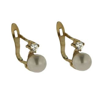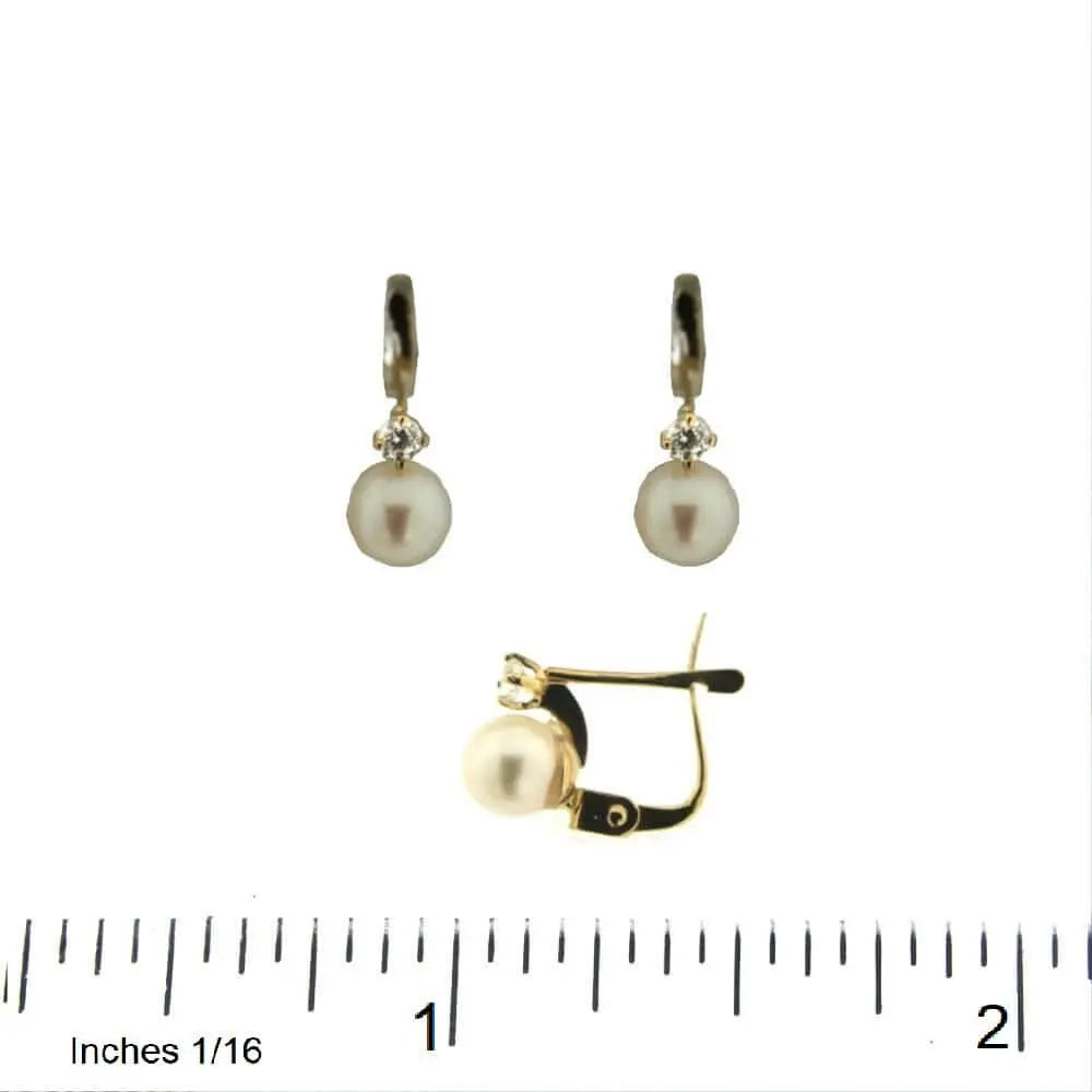 Discover the timeless elegance of our Classic 18K Solid Yellow Gold Zirconia and Pearl Leverback Earrings. Each earring features a radiant 5mm cultivated pearl paired with a sparkling 2.70 mm cubic zirconia stone, creating a sophisticated blend of luster and shine. With a total height of 0.35 inches, these earrings are designed to complement any look, from casual daywear to more formal attire.