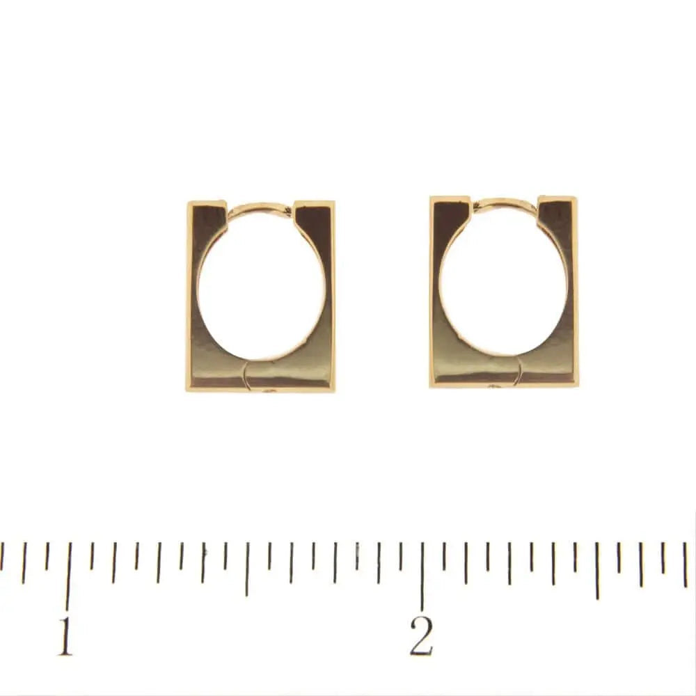 Make a bold statement with our 18K Yellow Gold Square Rectangle thin Huggie Hoop Earrings, a perfect choice for those seeking a modern yet timeless accessory. These striking earrings feature a sleek geometric design, measuring 0.58 x 0.46 x 0.075 inches (14.8 x 11.75 x 1.93 mm), making them a versatile addition to any jewelry collection.