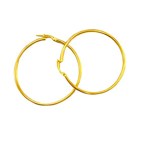 18K Solid Yellow Gold Thin Polished Hoop Earrings 40 x 2 mm