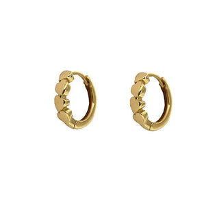 18K Solid Yellow Gold Mother of Pearl Heart Endless Hoop Earrings