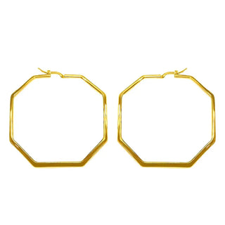 18K Solid Yellow Gold Octagonal Electroformed Hoop Earrings