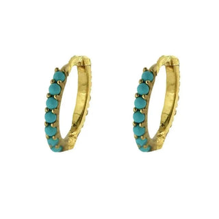 18k Yellow Gold Turquoise Small Hinged Huggie Earrings