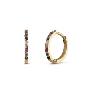 18k Solid Yellow Gold thin Multicolor Zircon Hinged Hoop Earrings