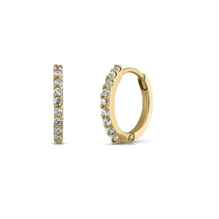 18K Solid Yellow Gold Diamonds Hinged Hoop Huggie Earrings 10mm
