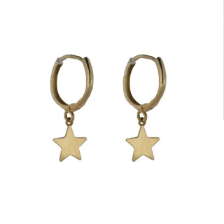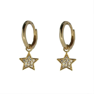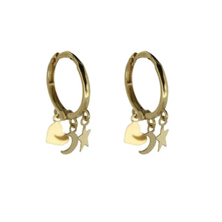 18k Gold Star Moon and Heart Charms Hinged Hoop Earrings