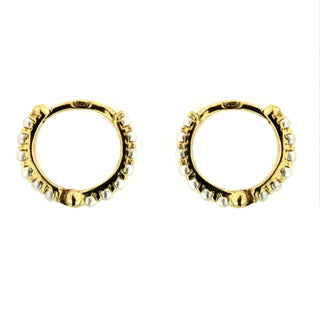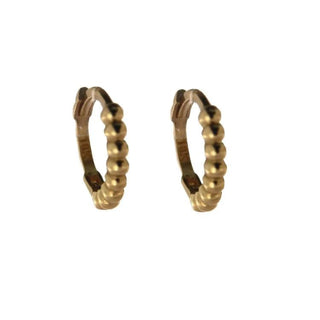 18K Solid yellow Gold Bead Hinged Huggie Earrings front and back 12mm