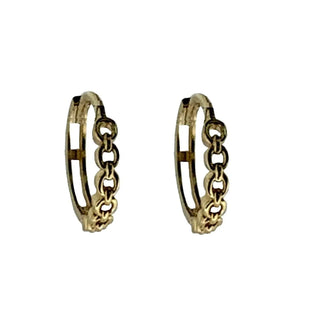 18K Solid Yellow Gold Chained Handcuff Hinged Hoops Earring