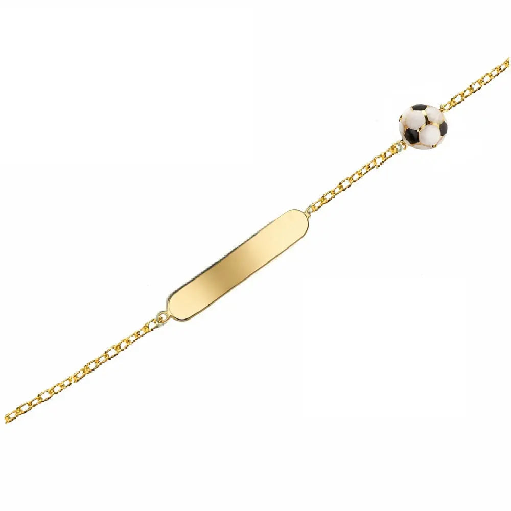 Bring playful elegance to your little one’s jewelry collection with this charming 18K Solid Yellow Gold Enamel Soccer Ball ID Bracelet. Designed especially for young sports lovers, this beautiful bracelet measures 5.6 inches and includes an extra adjustment ring at 4.75 inches, offering a comfortable and secure fit for children ages 0 to 5 years old. The delightful enamel soccer ball accent adds a fun, sporty detail that makes this piece truly unique and full of personality.