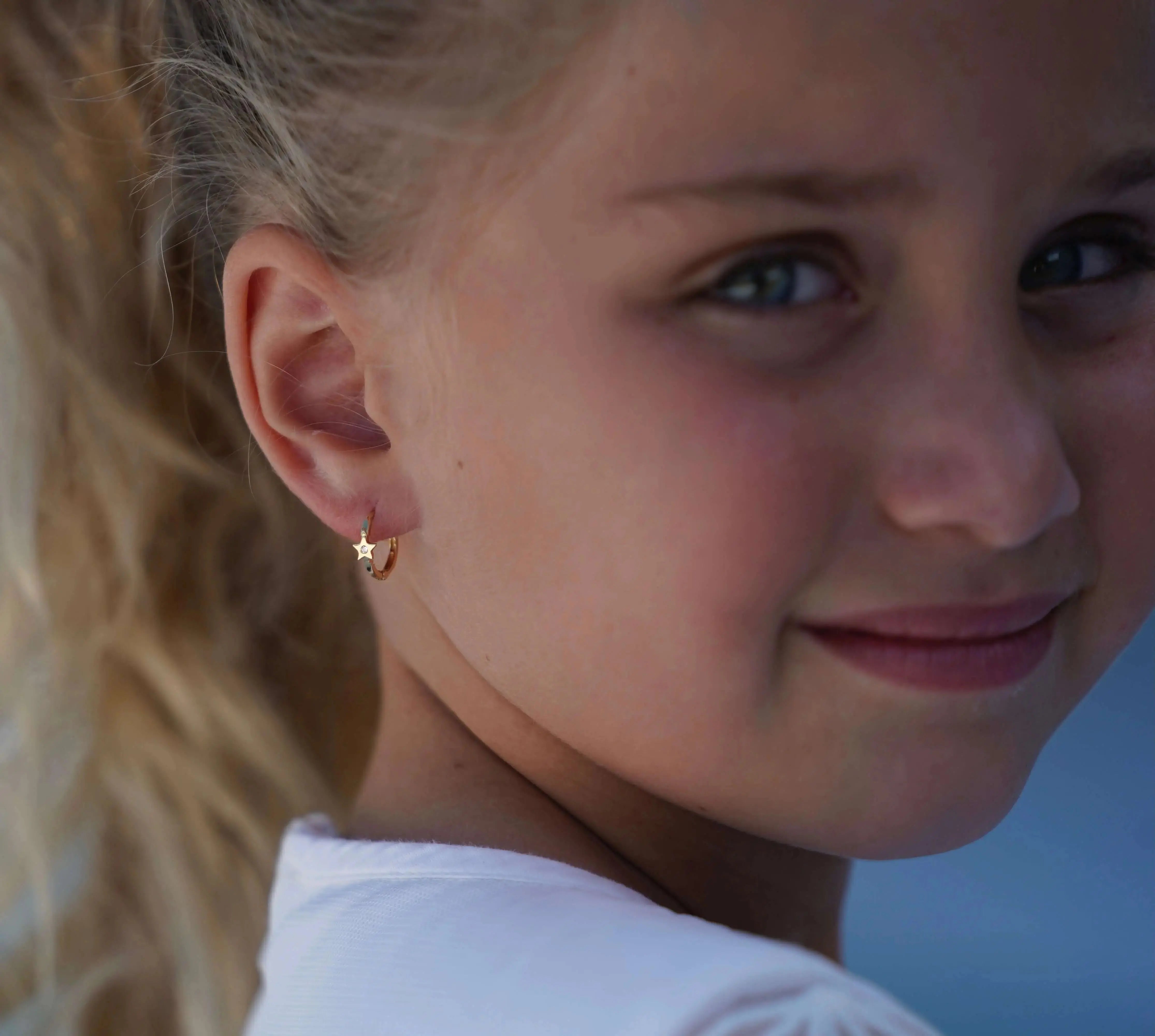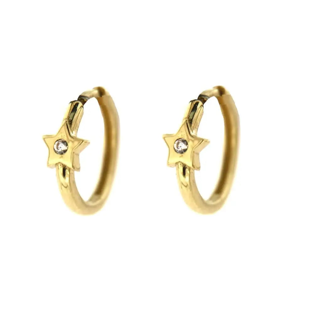 Discover elegance and sophistication with our 18K Solid Yellow Gold Star Zirconia Hinge Hoop Earrings. Perfectly sized at a diameter of 0.51 inches (12.9mm) and a star size of 0.18 inches (4.54mm), these earrings effortlessly blend luxury with comfort. Crafted from hypoallergenic 18k solid yellow gold that is lead and nickel-free, they ensure a gentle touch against the skin, making them suitable for everyday wear. Each earring is adorned with a sparkling zirconia star, adding a touch of glamour and refinement to any outfit. Presented in an exclusive Amalia Gift Box and bag, these earrings make an ideal gift for a loved one or a splendid addition to your own jewelry collection. Elevate your style and add a piece of timeless elegance to your look with these exquisite star zirconia hoop earrings.