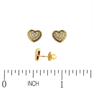 18K Solid Yellow Gold Zirconia Pave Heart Screwback Earrings