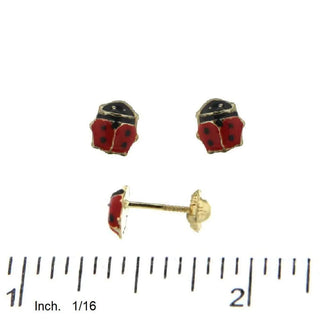 18K Yellow Gold Red Enamel Lady Bug Screwback Earrings