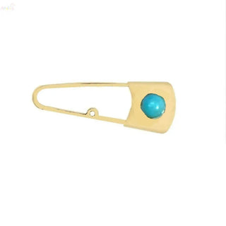 18K Gold Enamel Hamsa Hand and Evil Eye Turquoise Safety Pin