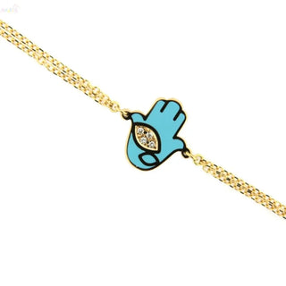 18K Solid Yellow Gold Blue Ceramic Diamond Hamsa Pendant