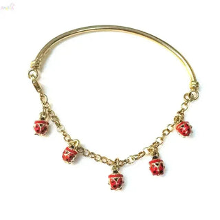 18K Solid Yellow Gold Multi Color Evil Eye 6 inches Bracelet