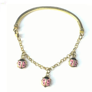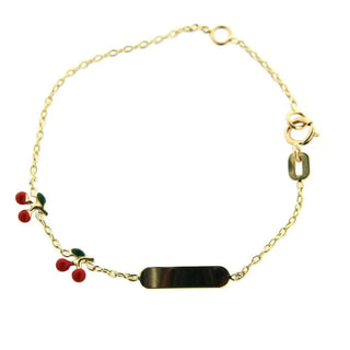 18K Solid Yellow Gold Pink Enamel Unicorn Baby Id Bracelet