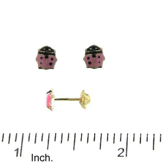 18k Yellow Gold Pink Enamel Small Lady Bug Screwback Earring