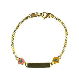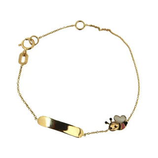 18K Solid Yellow Gold Pink and White Bumble Bee ID Bracelet