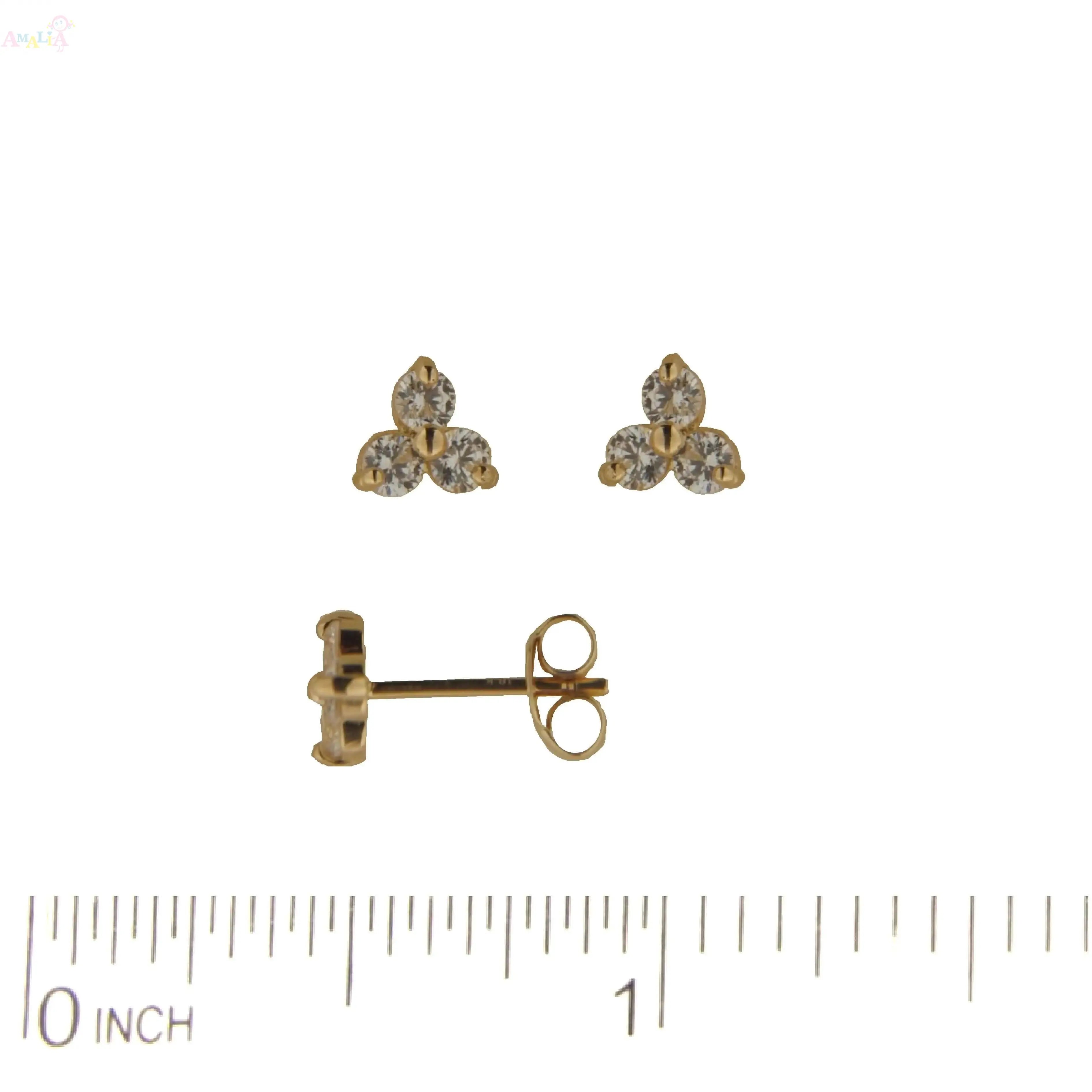 Introducing our 18K Solid Yellow Gold Trio Tiny Stud Earrings, showcasing a beautiful three-stone cluster design. These elegant earrings measure 0.23 x 0.21 inches (6 x 5 mm) and are meticulously crafted from hypoallergenic 18k solid yellow gold, ensuring they are lead and nickel-free. Your purchase includes an Amalia gift box and bag, making these earrings an ideal gift or a luxurious addition to your collection. Embrace sophistication with these exquisite gold stud earrings.