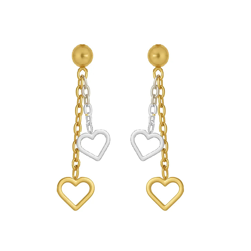 Enhance your elegance with our 18K Two Tone Solid Gold Open Heart Dangle Earrings, a stunning blend of modern style and timeless romance. Measuring approximately 1.16 inches in height, each earring features a graceful yellow gold diamond cut cable chain with an open yellow heart and a white gold diamond cut cable chain with a matching open white heart, creating a captivating two-tone contrast. Expertly crafted in hypoallergenic solid 18K gold, these earrings are nickel-free and lead-free, making them a comfortable choice for sensitive ears. Their delicate movement and refined shine make them perfect for both everyday wear and special occasions. Ideal for birthdays, anniversaries, graduations, or thoughtful “just because” gifts, every pair arrives nestled in an elegant Amalia gift box and bag, ready to delight. Elevate your jewelry collection with these versatile and exquisite two-tone open heart dangle earrings, designed to complement any outfit and celebrate your unique, sophisticated style. A beautiful choice for teens and adults, they bring effortless Italian luxury to your everyday and special-occasion looks, truly.
