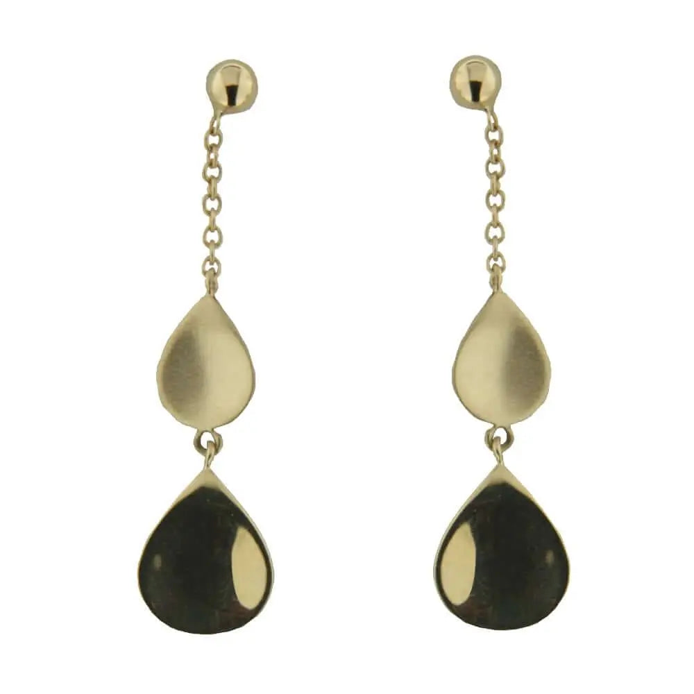18K Yellow Gold Large shiny and Small Satin Tear Drops Dangle Post Earrings 1.25 inches long..