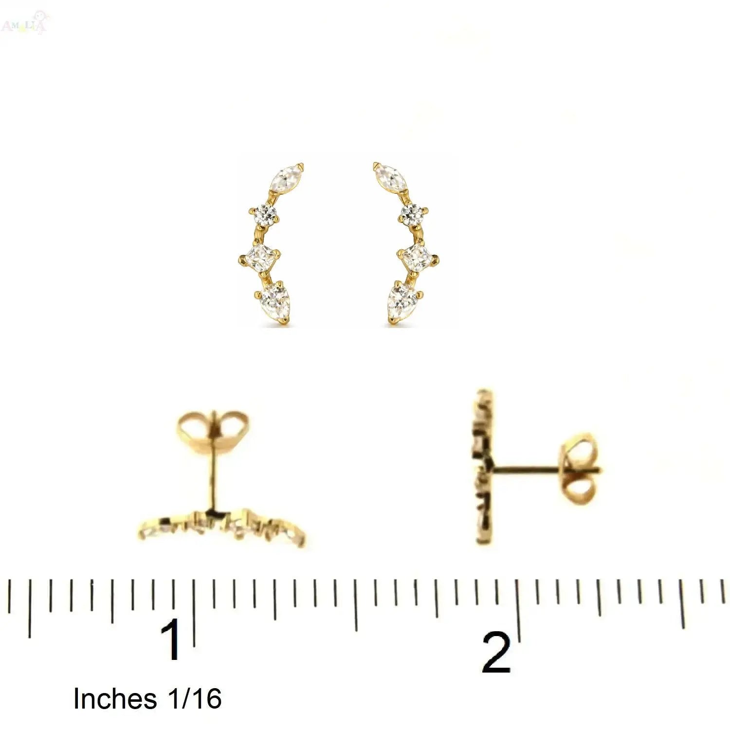 Each pair comes beautifully packaged in an Amalia gift box and bag, making them an ideal choice for birthdays, holidays, or any special celebration. Whether as a gift or a personal treat, these climber earrings bring timeless elegance and modern flair to any jewelry collection. Let her style shine with these stunning 18K Yellow Gold Tiny Multi-Shape Zirconia Climber Earrings.