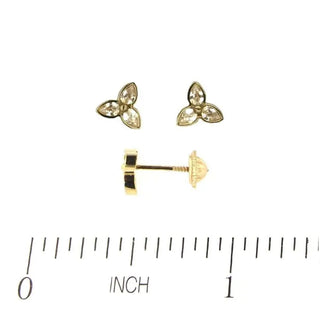 18K Yellow Gold Zirconia Three Leaf Flower Screwback Earring