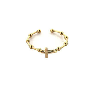 18k Solid Yellow Gold Open Rosary Cross Ring-Denario