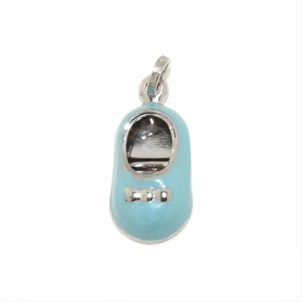 18K White Gold Light Blue Enamel Shoe Charm (15mm X 10mm/25mm with Bail)