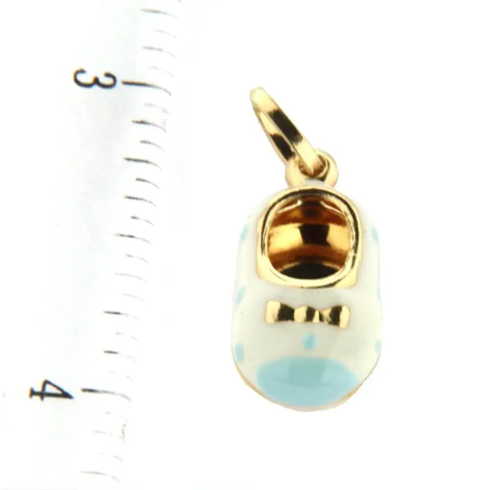 18K Yellow Gold White Enamel Shoe Charm with blue toe and dots (15mm X 10mm/25mm with Bail)