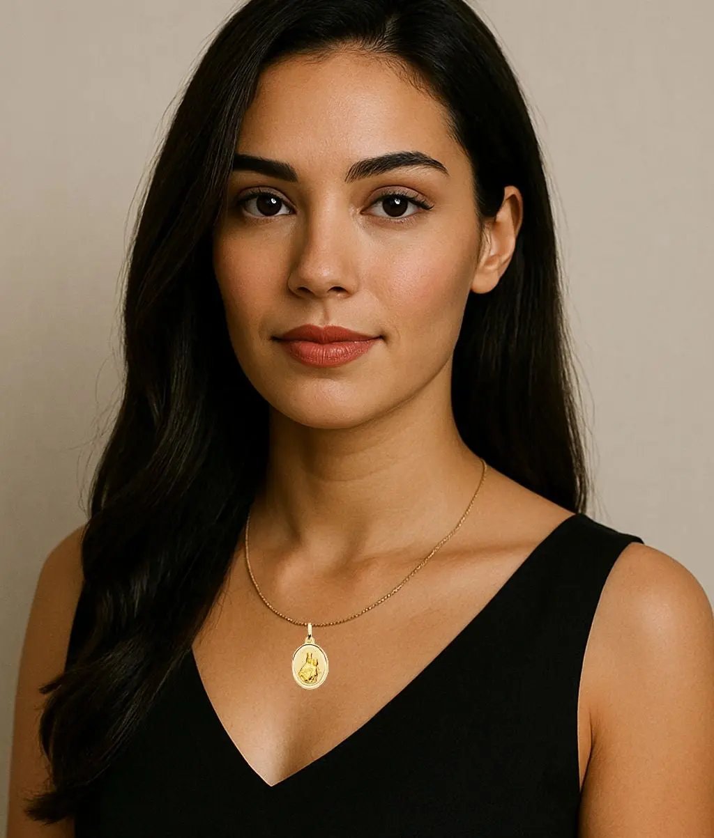 Celebrate the revered title of Mary Help of Christians with our exquisite 18K Solid Yellow Gold Mary Help of Christians Medal, crafted from hypoallergenic, lead and nickel-free 18K yellow gold. Measuring 16 mm in diameter (0.63 inches), this medal beautifully showcases the image of Mary, the mother of Jesus, known as Maria Auxiliadora in Spanish. Each medal is elegantly presented in an Amalia gift box and bag, making it a perfect gift for someone special or a treasured addition to your own collection.