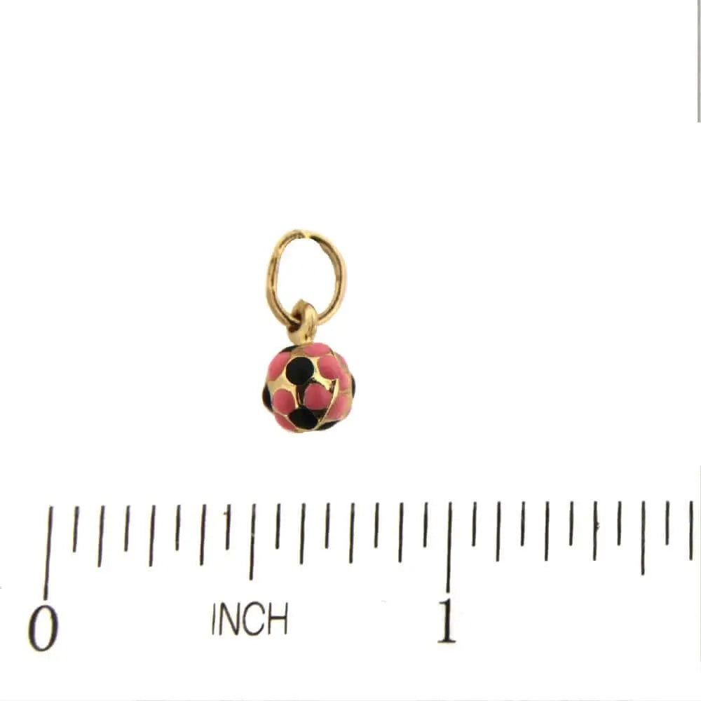18k Solid Yellow Gold Pink and Black Enamel Mini Soccer Ball Pendant