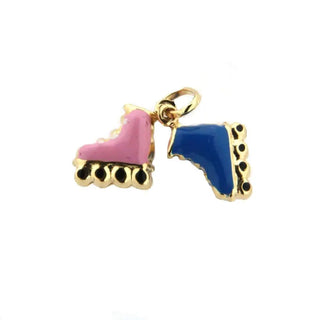 18K Yellow Gold Blue Enamel Skate Charm (9mm X 10mm/18mm with Bail)