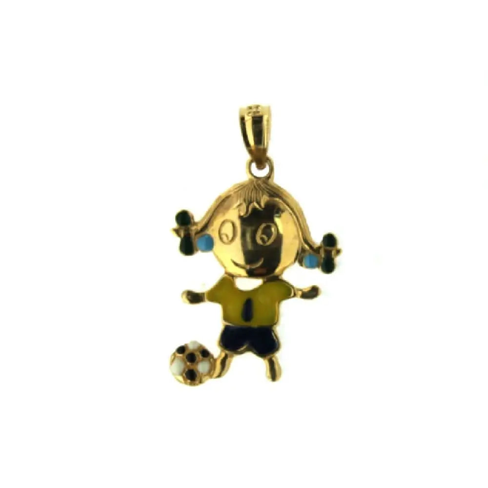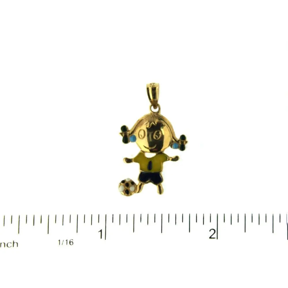 18K Yellow Gold Enamel Soccer Girl Brasil (19mm X 16mm/25mm with Bail)