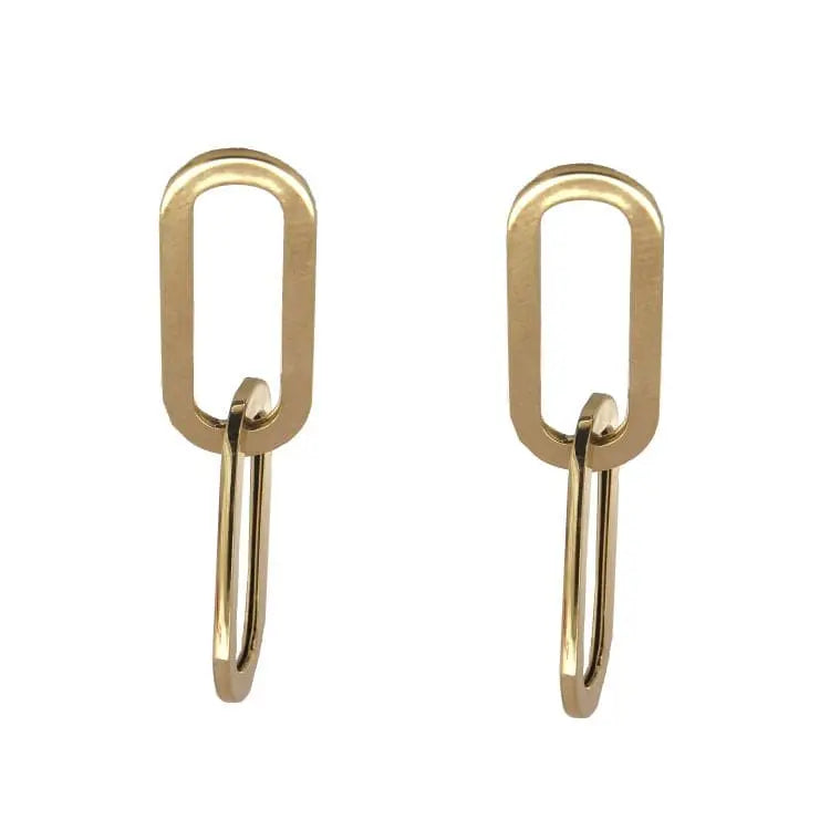18K Solid Yellow Gold Large Paperclip Dangle Earrings