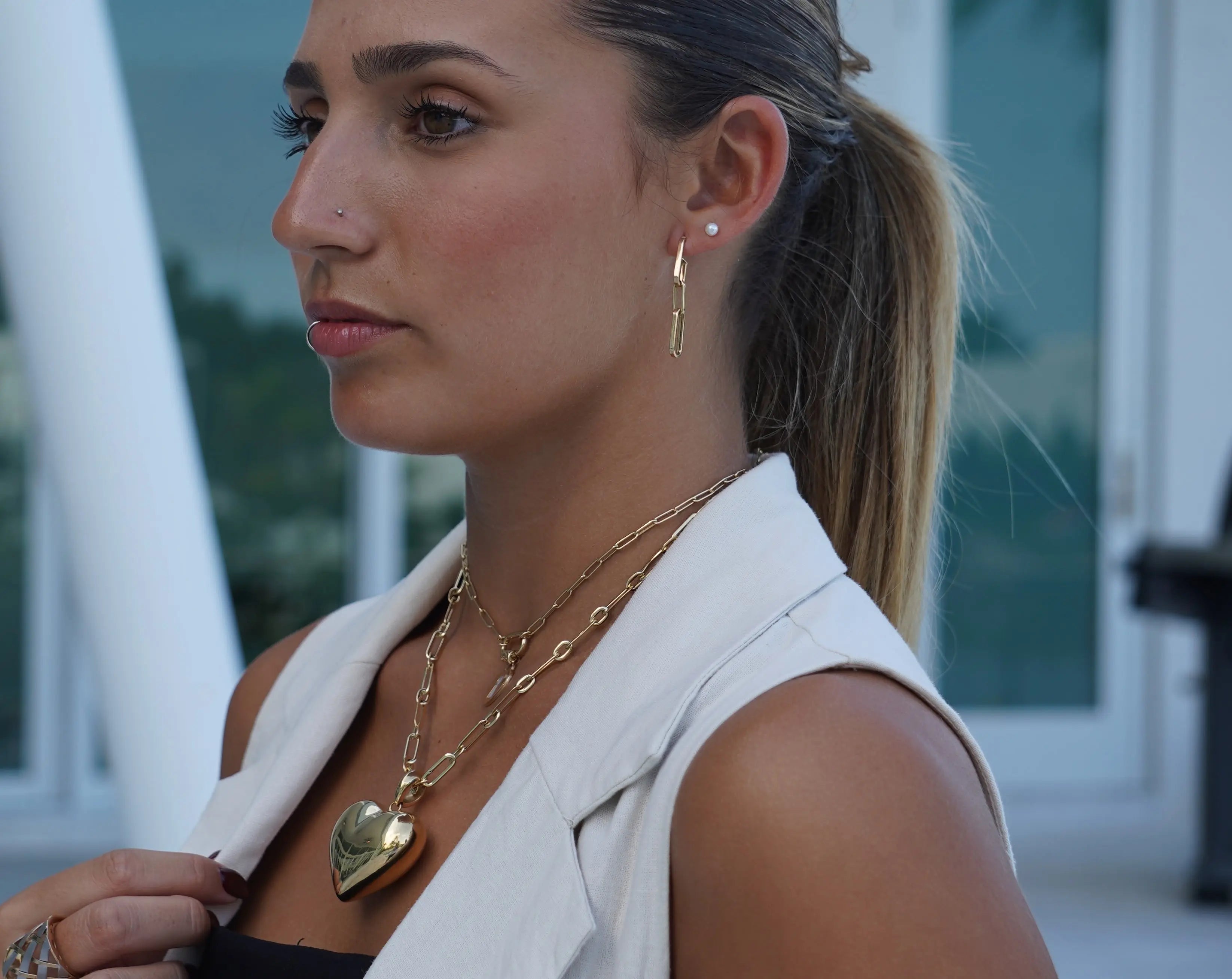 Enhance your style with our exclusive 18K Solid Yellow Gold Light Paper Clip Dangle Earrings. Perfectly combining sophistication with a modern twist, these earrings are a must-have in any jewelry collection. Their unique paper clip design measures 1.52 x 0.25 x 0.09 inches, offering a contemporary aesthetic that complements any outfit.